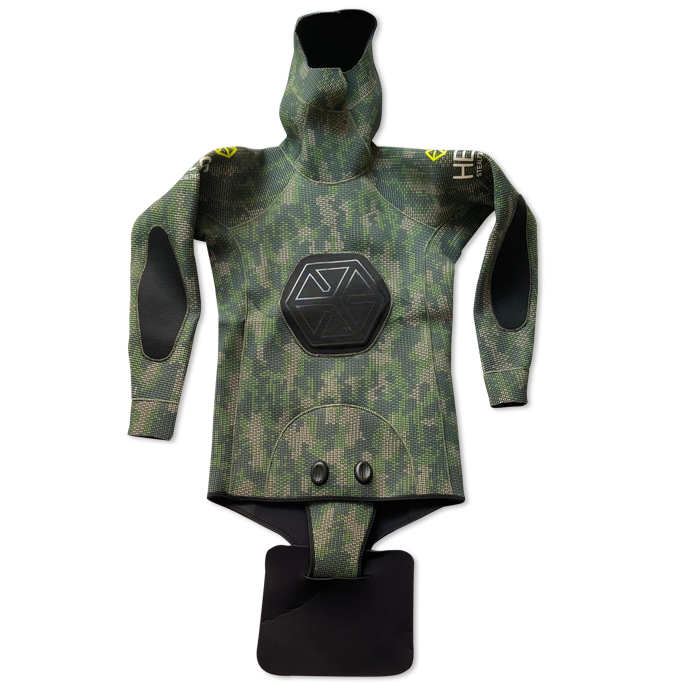 Available in both 3mm and 5mm thicknesses, the HECS wetsuit is constructed with premium stretch open cell neoprene for comfort, flexibility, and warmth. Reinforced knee and elbow pads, double-stitched seams, and a secure chest pad for speargun loading make this suit as tough as it is stealthy. Finished in our iconic green camo pattern, it’s the ultimate blend of function, durability, and concealment.